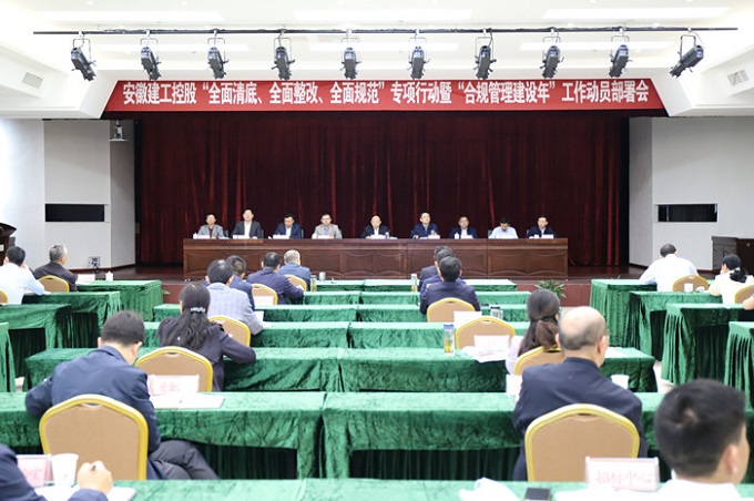 5月12日上午,建工控股黨委召開“全面清底、全面整改、全面規(guī)范”專項行動暨“合規(guī)管理建設(shè)年”工作動員部署會。建工控股黨委書記、董事長趙時運(yùn)出席會議并講話,黨委副書記、總經(jīng)理劉家靜主持會議。建工控股、建工股份兩級領(lǐng)導(dǎo)班子成員出席會議。