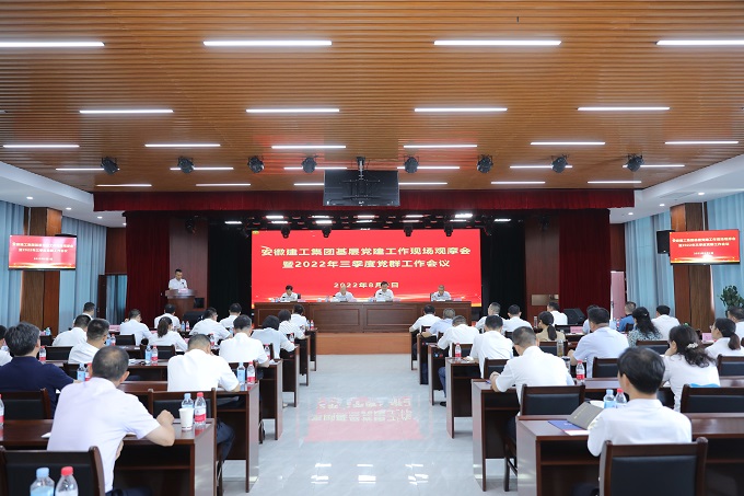 8月2日上午,集團基層黨建工作現場觀摩會暨2022年三季度黨群工作會議在安徽建工中侖智能制造有限公司召開。建工控股黨委書記、董事長趙時運出席會議并講話,黨委委員、紀委書記、監察專員王汪苗主持會議。