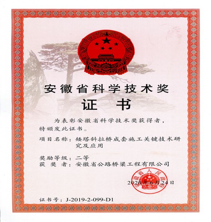 同時,安徽路橋還以提升技術創新水平助力蝶變之路。多年來,安徽路橋持續加大創新投入,完善科研創新體制機制,依托省級技術中心,立足項目一線,重點加強新技術、新工藝和新材料的課題攻關。獲得授權發明專利34項、實用新型專利129項;榮獲國家級行業協會科技獎一等獎1項、二等獎9項、三等獎15項;國家級行業協會QC小組一等獎6項、二等獎14項、三等獎6項;榮獲安徽省科學技術獎二等獎2項,獲得省部級工法62項,52項合理化建議榮獲省重大合理建議成果獎,主編和參編地方標準6項。2017年、2020年,連續被認定為國家級高新技術企業。